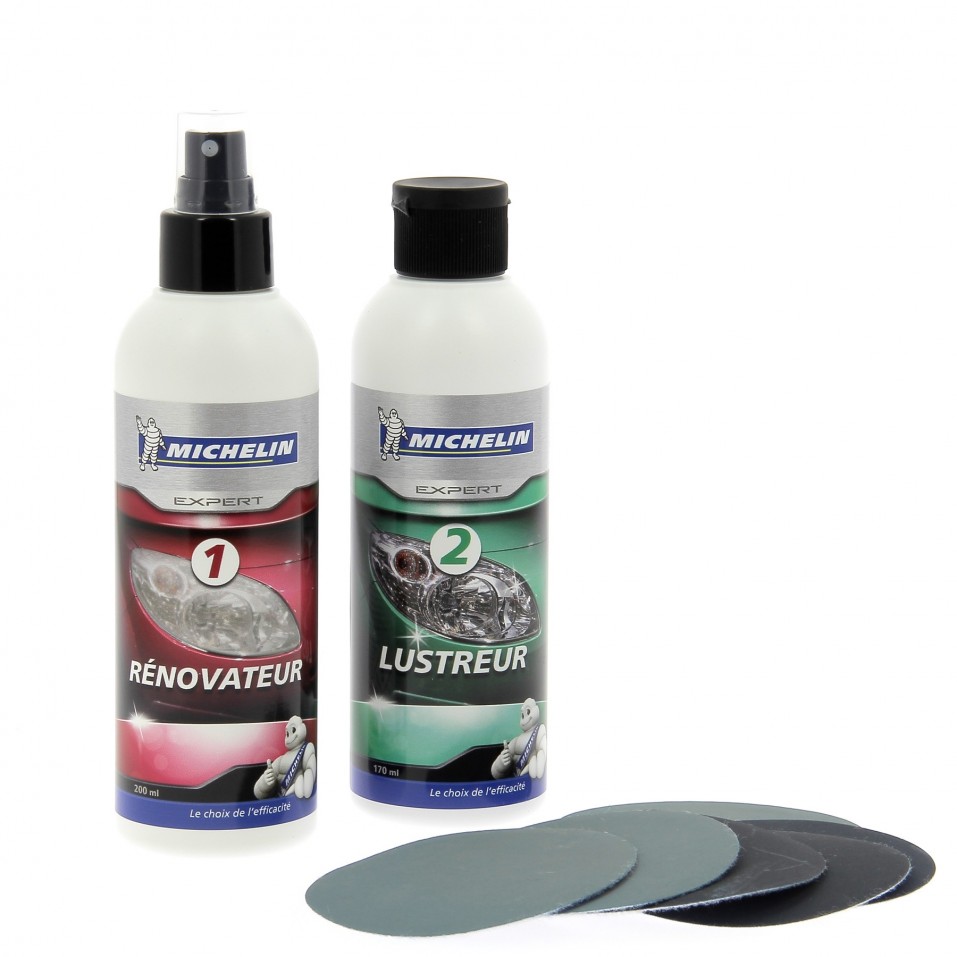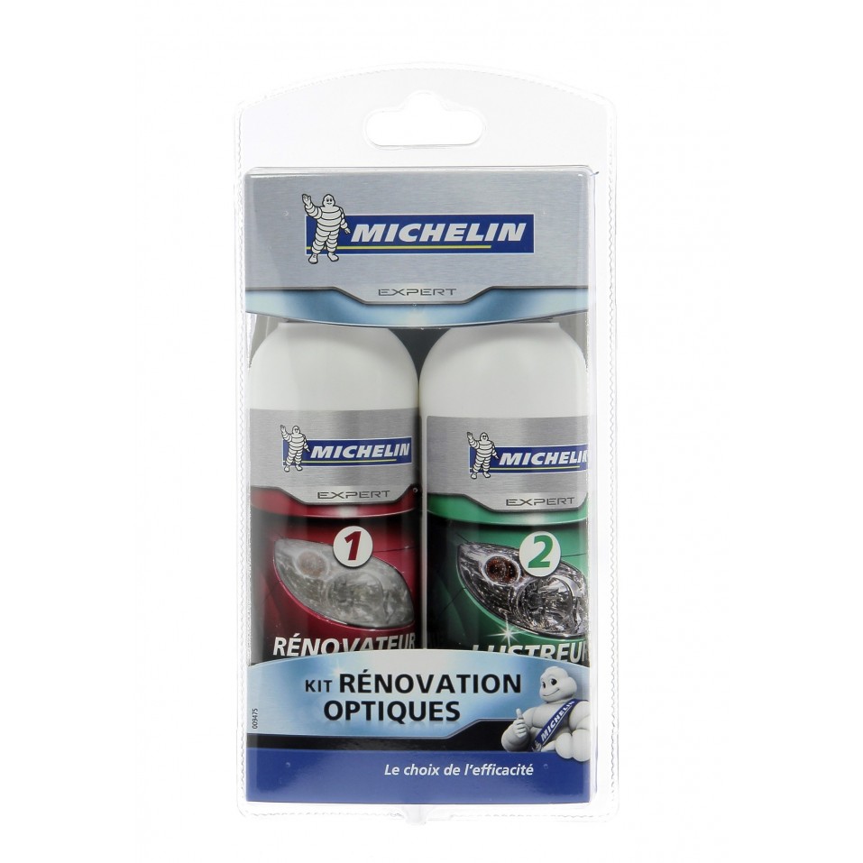 Le kit rénovation phare MICHELIN a été formulé pour vous garantir un résultat optimal. Kit rénove optique comprenant : - 1 spray rénovateur 200ml - 1 flacon de finition 170ml - 7 disques de polissage. Rapide et facile d'utilisation pour la rénovation des phares ternis et jaunis par le temps et les UV. Rénove sans rayer, redonne la transparence et l'éclat d'origine. Evite la contre-visite au contrôle technique. Traitement en 2 étapes : - RENOVATION avec le spray rénovateur + disques de polissage fournis. - FINITION avec le flacon de finition + chiffon sec et doux pour redonner l'éclat cristal aux optiques. Avec le Rénove optique, vous faites le choix de l'efficacité.